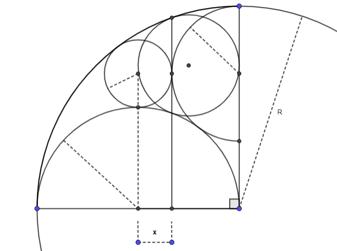 Na figura mostrada calcular o tamanho do raio da enésima circunferência. A)[tex3]\frac{R}{(n+1)^2}[/tex3] B)[tex3]\frac{R}{(n^2-1)}[/tex3] C)[tex3]\frac{R}{(n^2+1)}[/tex3] D)[tex3]\frac{R}{(n^2+2)}[/tex3] E)[tex3]\frac{R}{(n^3+1)}[/tex3]
