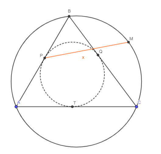 h = altura do triângulo (isósceles) △OBM {\mathsf{ cos(PBM)=cos(\angle ABC+ \angle CBM)= cos(\angle ABC)cos(\angle CBM)−sen(\angle ABC)sen(\angle CBM)\\ BM=MC \implies \angle CBM=\frac{\angle...