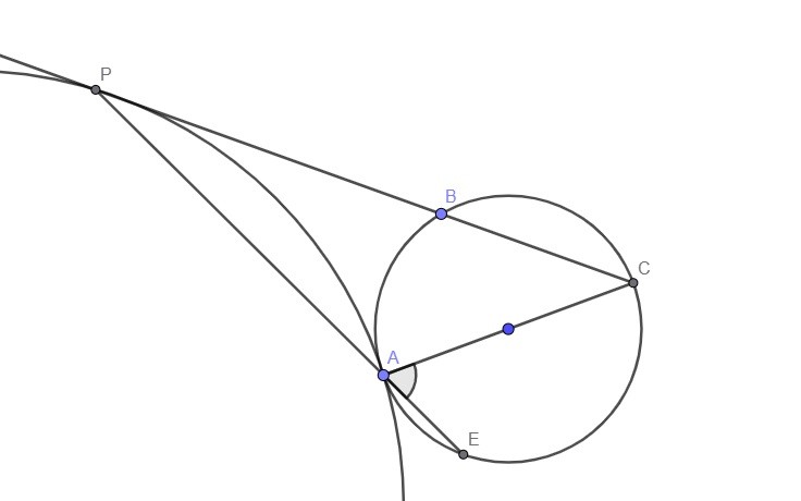 H\text{ o ponto de intersecção de }(AC)\text{ com }(BT)\\ \underline{\bullet \,\angle HO'T=\angle CBH}\\ \angle BCA=90°\text{(lado AB diâmetro do círculo circunscrito de $\triangle ABC$)} \angle BTO'=90°\,((BT)\text{ tangente ao círculo em...
