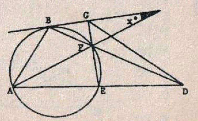 Se [tex3]\overset{\LARGE{\frown}}{AE} = 90^o [/tex3], [tex3]\angle BDA = 60^o , [/tex3] e [tex3]\angle BAF =\angle FDG[/tex3], calcular xo sendo B ponto de tangência.