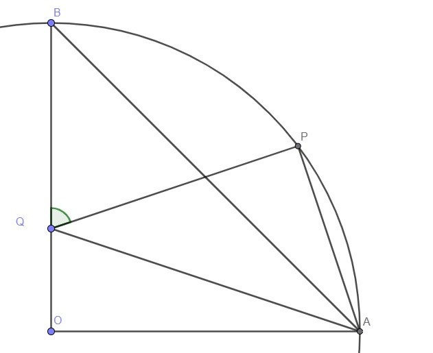 Em um quadrante sobre o arco AB marca-se o ponto "P" e em BO o ponto Q, tal que [tex3]\angle PAB = \angle BAQ [/tex3] e QB = 2OQ. Calcular [tex3]\angle PQB[/tex3]