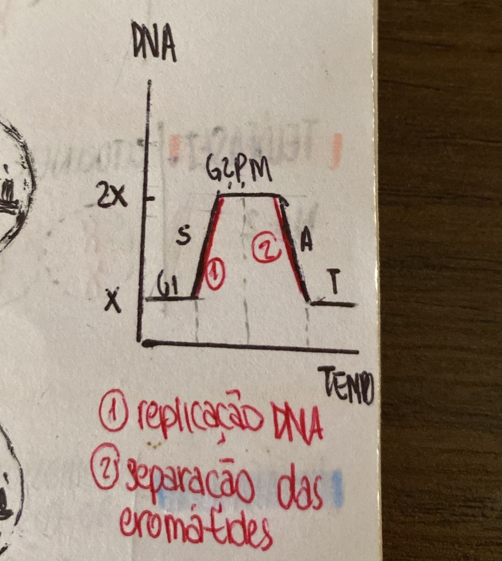 Olá! A ideia da letra b seria a seguinte: Houve 2 divisões celulares. Primeira divisão celular: haverá duas moléculas de DNA (4 fitas no total); cada uma terá 50% de de DNA com bases nitrogenadas formadas com isótopo pesado 15N e 50% com bases...