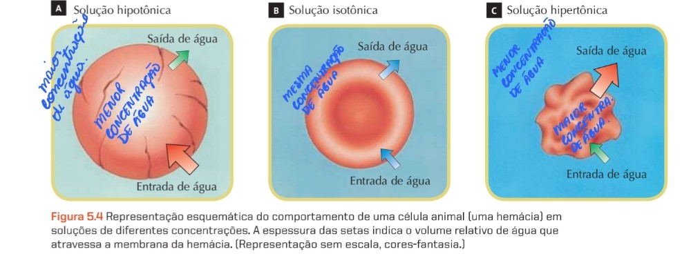 Antes de entender essas relações, precisamos saber que a concentração é dada pela quantidade de soluto (sais) dissolvido no solvente (a água, no caso de tecidos biológicos) e que existe SEMPRE uma comparação entre os tecidos biológicos...