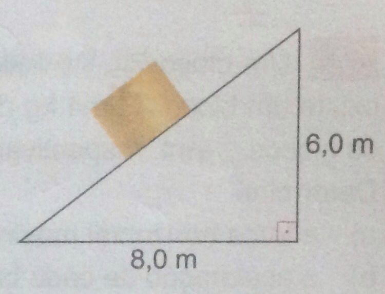 Em primeiro lugar, chamando o ângulo entre o lado do triângulo que vale 8m e a hipotenusa de [tex3]\theta[/tex3], [tex3]\begin{cases}sen\theta =\frac{6}{10}=0,6\\cos\theta =\frac{8}{10}=0,8\end{cases}[/tex3]