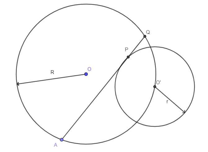 Se o círculo menor não for tangente a [tex3]AQ[/tex3], então não será possível determinar o raio maior, pois existem infinitos pontos [tex3]O'[/tex3] tais que [tex3]O'P = 6[/tex3] e cada um deles gera um [tex3]R[/tex3] diferente.