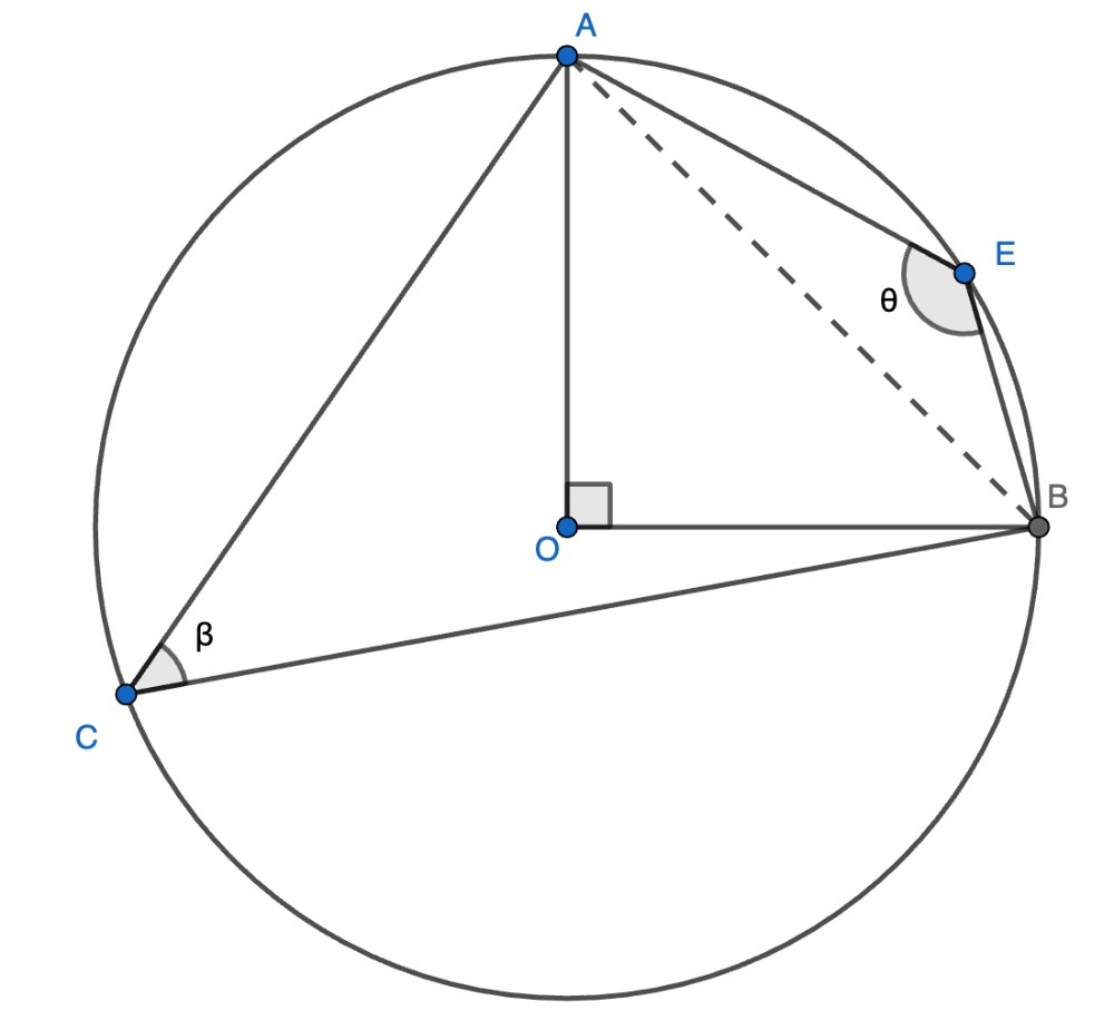 [tex3]ACB=\beta[/tex3], inscrito na circunferência, vale metade do ângulo central