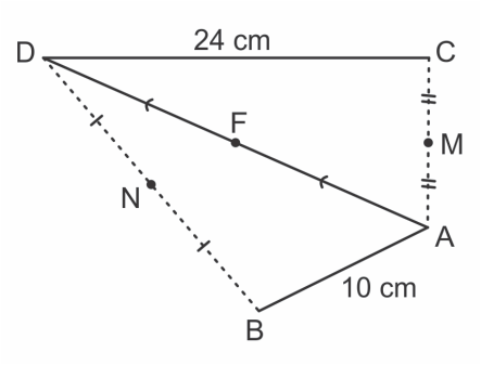 São dados os segmentos ortogonais AB e CD, tal que AB = 10 cm e CD = 24 cm. Sendo M e N os pontos médios de AC e BD.