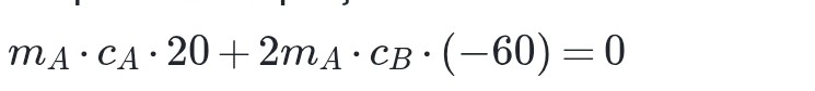 (m_A \cdot c_A \cdot 20) + (m_B \cdot c_B \cdot (-60)) = 0[/tex3]