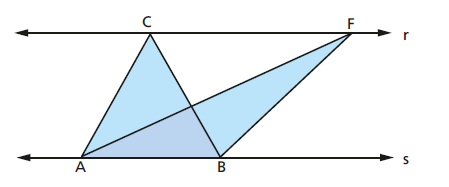 \text{ a altura de $\triangle ABF$ tem a mesma medida auqe a altura de $\triangle ABC$ já que $r$ e $s$ são paralelas}\\