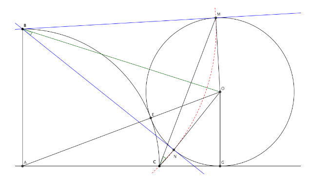 seja [tex3]\omega_A[/tex3] o círculo de diâmetro [tex3]AN[/tex3], cujo centro é [tex3]O_A[/tex3]. [tex3]\angle AMN = \angle AMB = \frac{\widehat{AB}}2 = 90^{\circ}[/tex3], logo, [tex3]M \in \omega _A[/tex3]. Seja [tex3]E = \omega _A \cap AB \neq A[/tex3]...