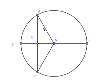 Substituindo: x= \frac{R\sqrt3}{2}\implies EF =2x = R\sqrt3 \implies\\