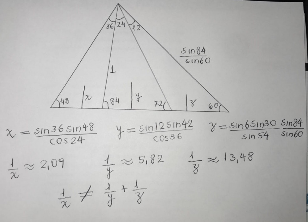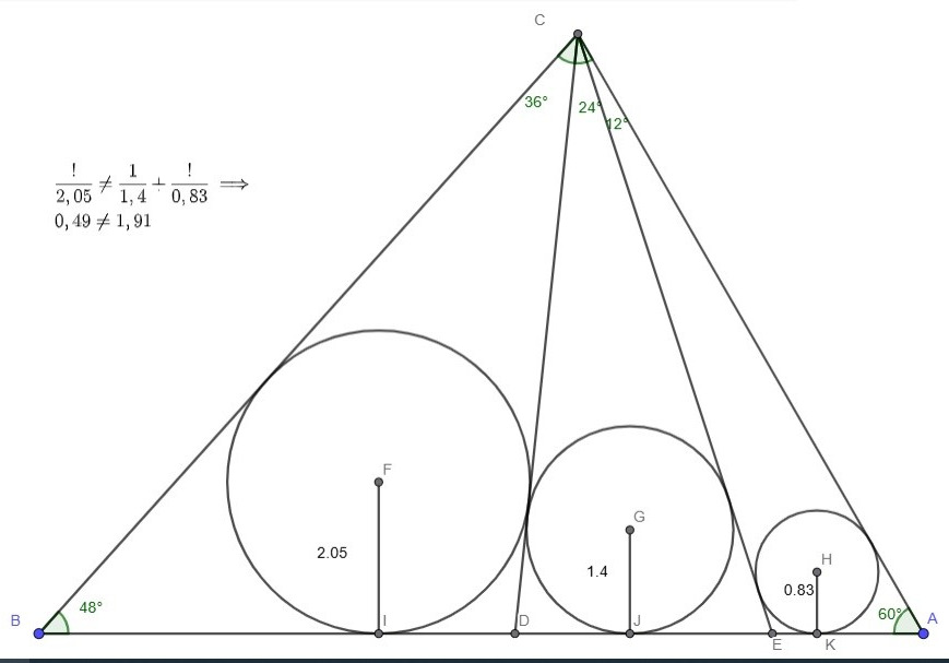 As círculos a seguir são tangentes às cevianas e aos lados do triângulo maior. Prove que [tex3]\frac{1}{x}=\frac{1}{y}+\frac{1}{z}[/tex3]